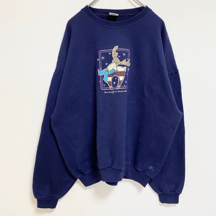 > 古着 used ~00s JERZEES ジャージーズ アニマルプリントスウェット/トレーナー トナカイ ネイビー 紺 XLサイズ