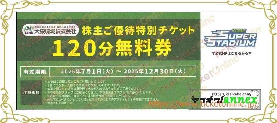- 神戸スーパースタジアム 120分無料券(2枚)・INAC KOBE メインスタンド自由席 1冊(10枚) KOBE SUPER STADIUM 大栄環境株主優待