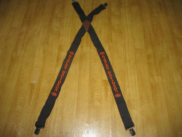 > ハーレーダビッドソン Harley-Davidson・ロゴ入り・ ライダースパンツ・サスペンダー・ブラック・オレンジ 美中古 ジャケット