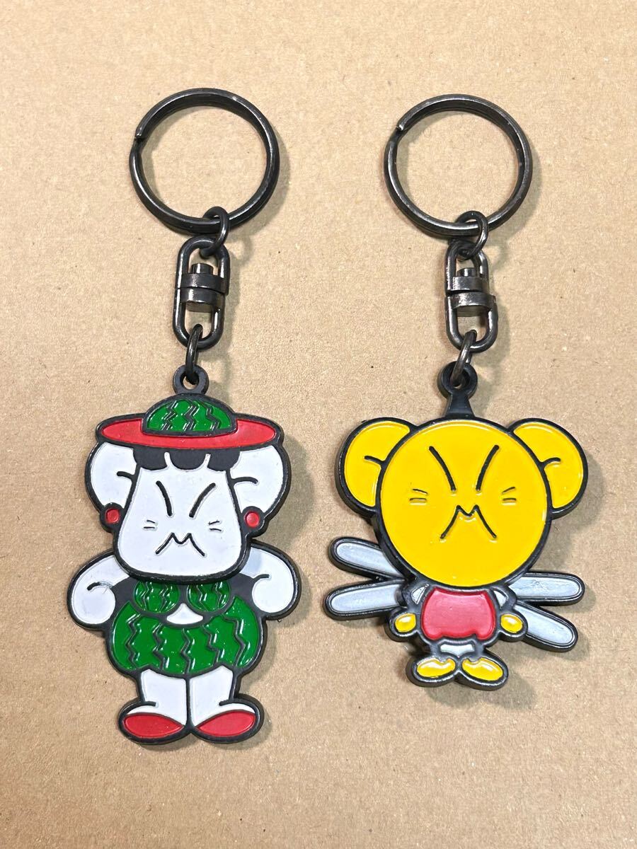 - くにちゃん キーホルダー『2点まとめ』山田邦子 KUNY スイカ他 タレントグッズ 金属製 開封経年品 レトロ