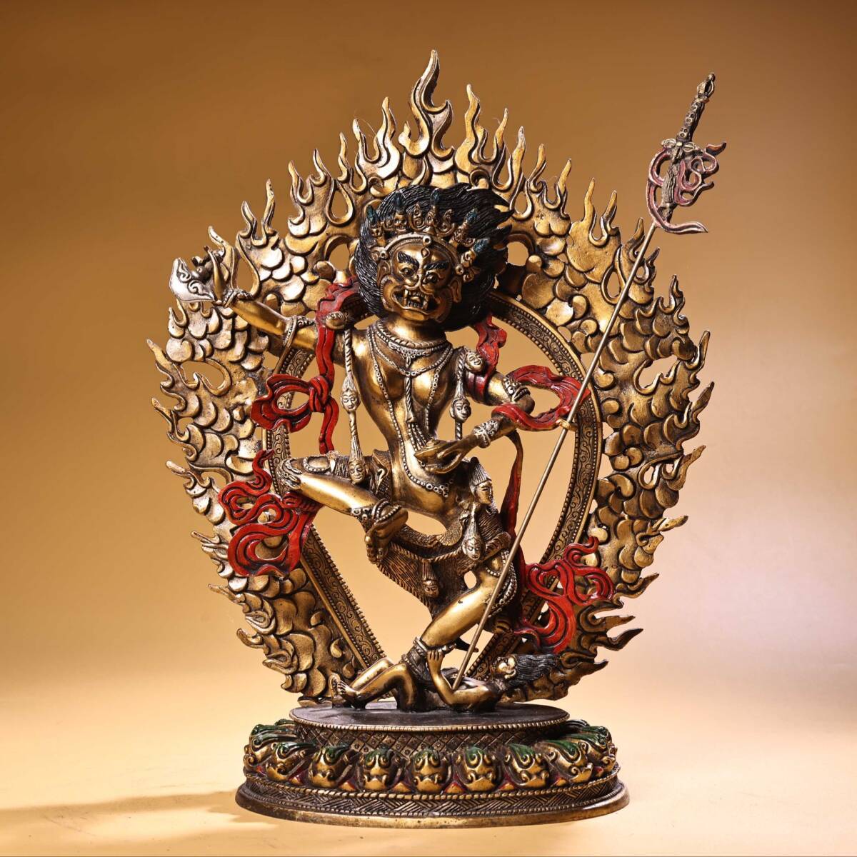 - 蔵友旧蔵出 銅製 彩繪 描金 背光 獅面空行母像 希少珍品 貴重品 置物 古賞物 密宗密教 供養品 仏教美術品
