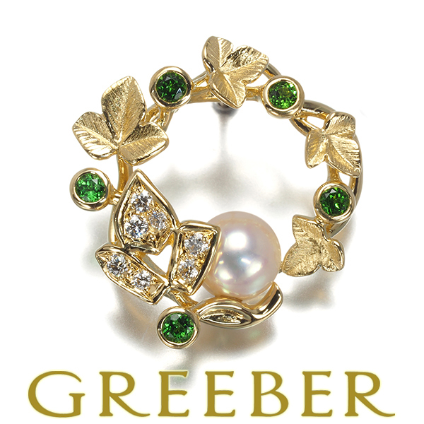 - ミキモト ブローチ パール 真珠 6.2mm グリーンガーネット リーフ ピン K18YG BLJ 大幅値下げ品