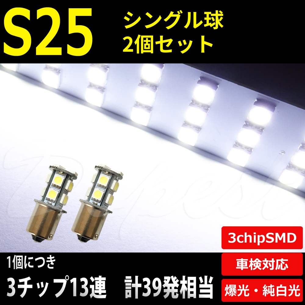 > LEDバルブ S25 BA15S バックランプ ホワイト(白) シングル 2個セット 車検対応 12V車専用 13連