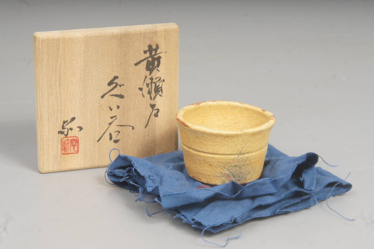- 美濃陶磁 林恭助 黄瀬戸ぐい呑 共箱入未使用品 酒器