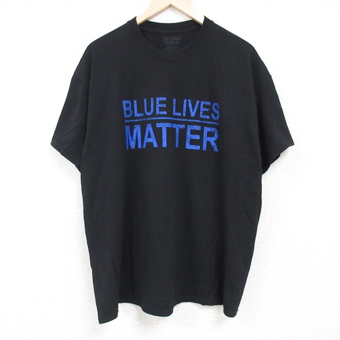 > XL/古着 半袖 Tシャツ メンズ ブルーライブズマター クルーネック 黒 ブラック 24jun25 中古