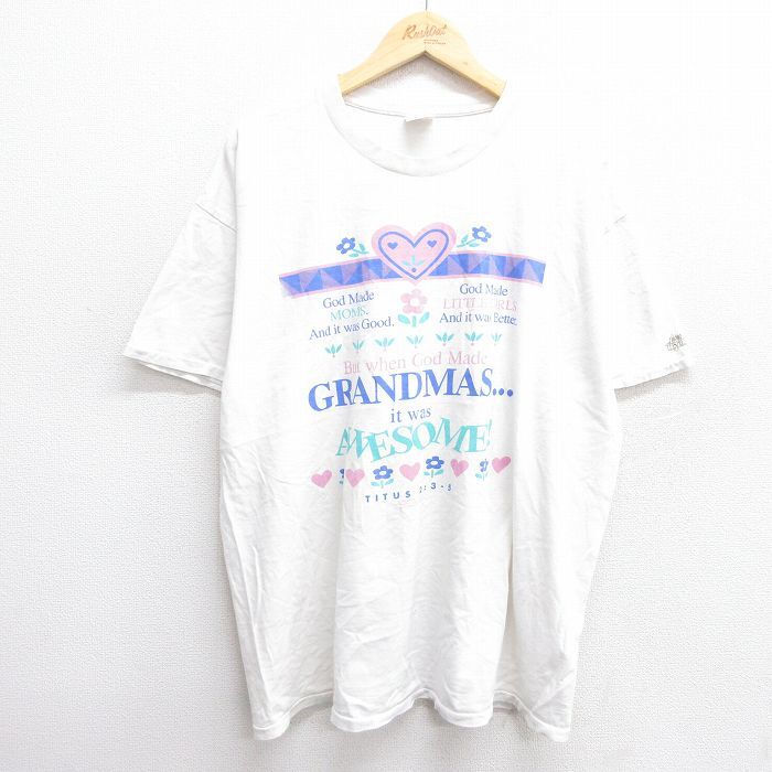 > XL/古着 半袖 ビンテージ Tシャツ メンズ 90s 花 ハート GRANDMAS 大きいサイズ コットン クルーネック 白 ホワイト 25may31