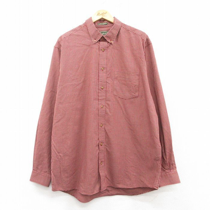 > XL/古着 エディーバウアー 長袖 ブランド シャツ メンズ 大きいサイズ ロング丈 コットン ボタンダウン エンジ他 チェック 2