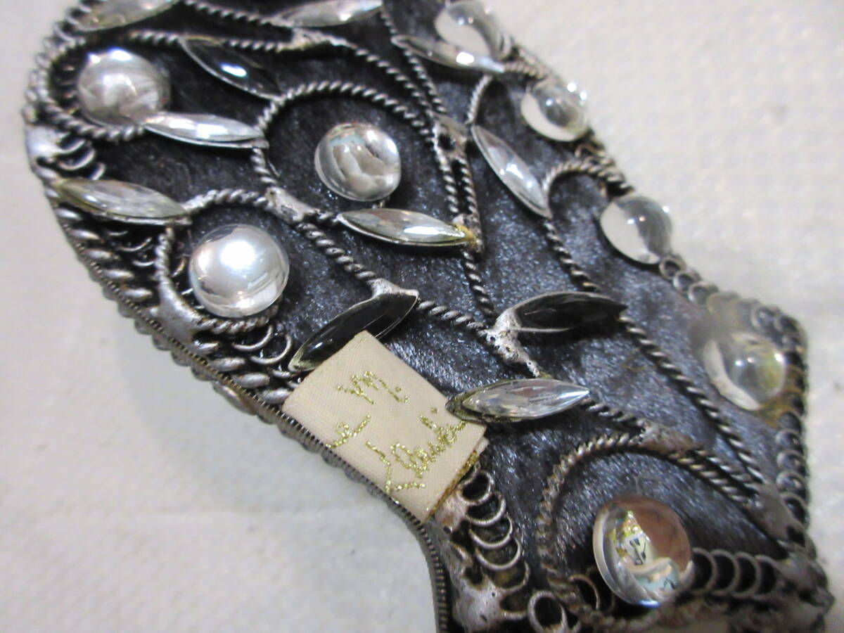 @現在、オークション出品画面が、「入札者ID」が表示されず、「入札数(数字のみ)」しかわからない状態で、複数入札されているかどうかがパッとみてわからない状況です。複数入札されている方は 落札後に メッセージより どれとどれを落札しているか、メッセージをいただけると助かります。あるいは落札後に「まとめて取引」を速やかにしていただけると助かります。お手数をおかけします。@出品している服は すべて当方のものではありません。購入時期や使用回数などは不明、あくまでも現状の状態での判断をしております。@当方から評価はいたしません。当方に悪い評価をつけられた場合、いかなる理由でも落札者様に「つけられた同じ評価をお返しすること」になります。@写真の右斜め上あたりに白い丸のくすみが写っている場合、デジカメのレンズの汚れで、本体の汚れではございません。手鏡です。年代や素座不明。ベロアにストーン付き実物ははとてもかわいいです。個人保管ですので、匂いを含め、神経質な方にはむきません。全てを写しきれずに申し訳ございませんが もし説明不足や写真以外のダメージがあった場合にも返金はできません。個人保管ですのでご理解の上ノークレームノーリターンで御願いいたします。「定形外(補償なし)」か「ゆうぱっく 東京よりサイズ60cm」「レターパック」発送予定。@ゆうパック希望の方は 落札後 ナビに必ず「希望時間帯」をお知らせください。(「希望時間帯なし」の場合含む)@複数の入札があった場合、次点の方との取引期間がなくなるので 落札後24位間以内に「取引開始」のない場合、繰り上げ操作をさせていただきます。(次点の方も同じく)決済期日のギリギリまでお待ちできませんのでご注意くださいませ。
