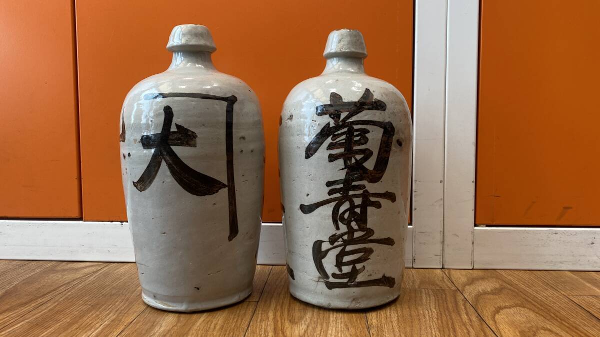 - 【2点セット】通い徳利 貧乏徳利 酒瓶 陶器 酒器 空き瓶 花瓶 花器 インテリア レトロ 古道具 宮代 葡寿堂 二三一三 大石