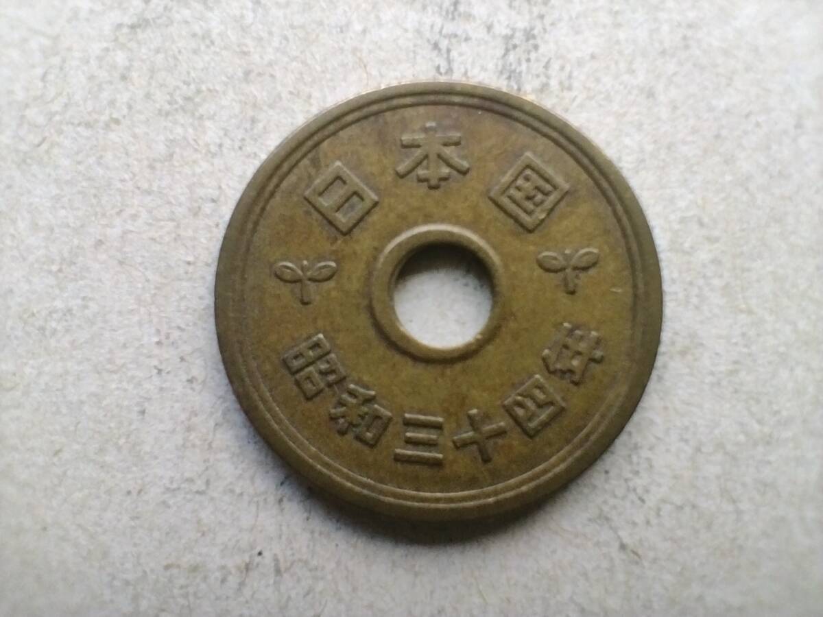 - エラーコイン 穴ズレ 穴ずれ 昭和34年 5円硬貨 5円玉 昭和三十四年 1959年 一九五九年 五円玉 五円硬貨 コイン メダル 貨幣 硬貨 即決