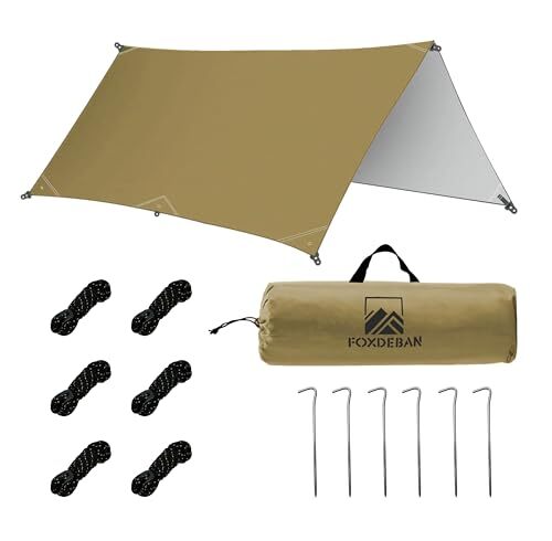 > カーキ 300×300CM Foxdeban 防水キャンプタープ たーぷテント 軽量コンパク設置簡単 日除け 雨よけ 防風 断熱材