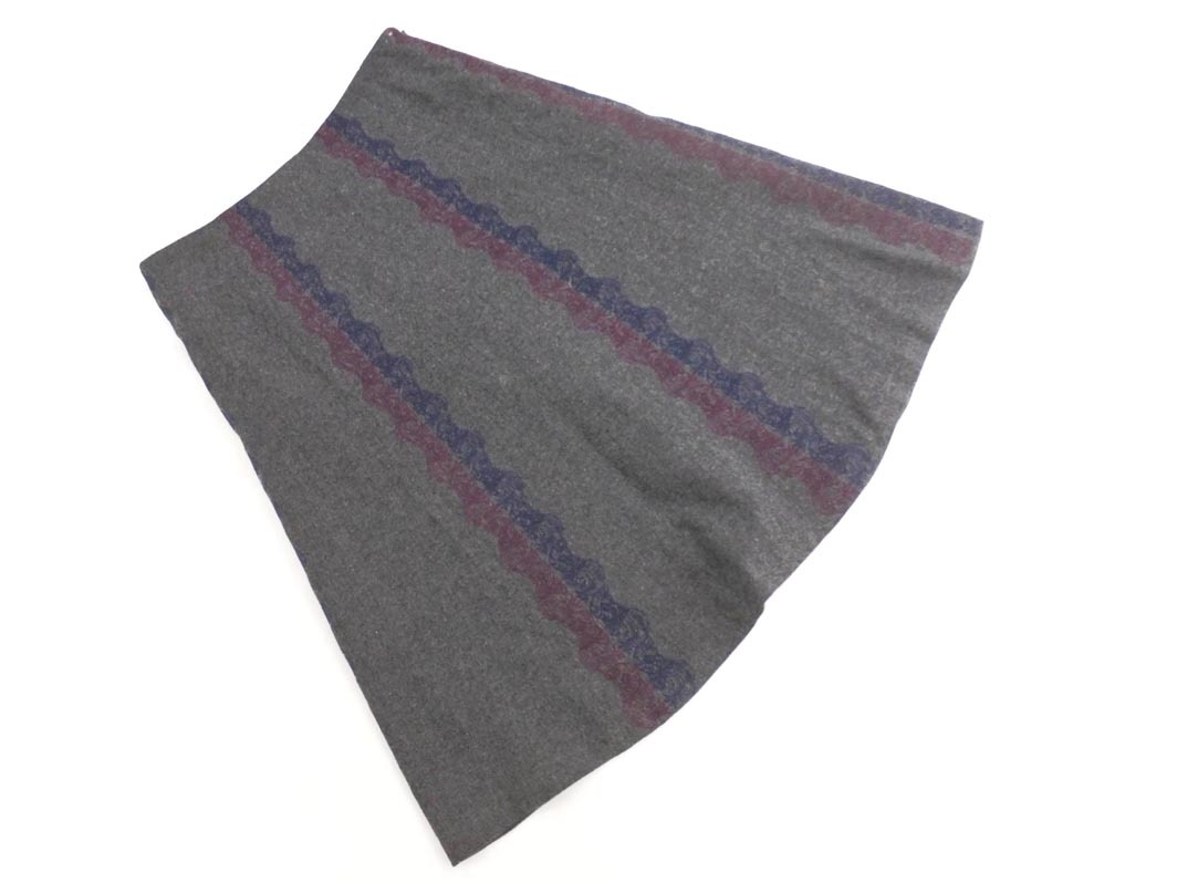 > LAURA ASHLEY ローラ アシュレイ ウール混 プリント フレア スカート size9/グレー ◇■ ☆ fib7 レディース