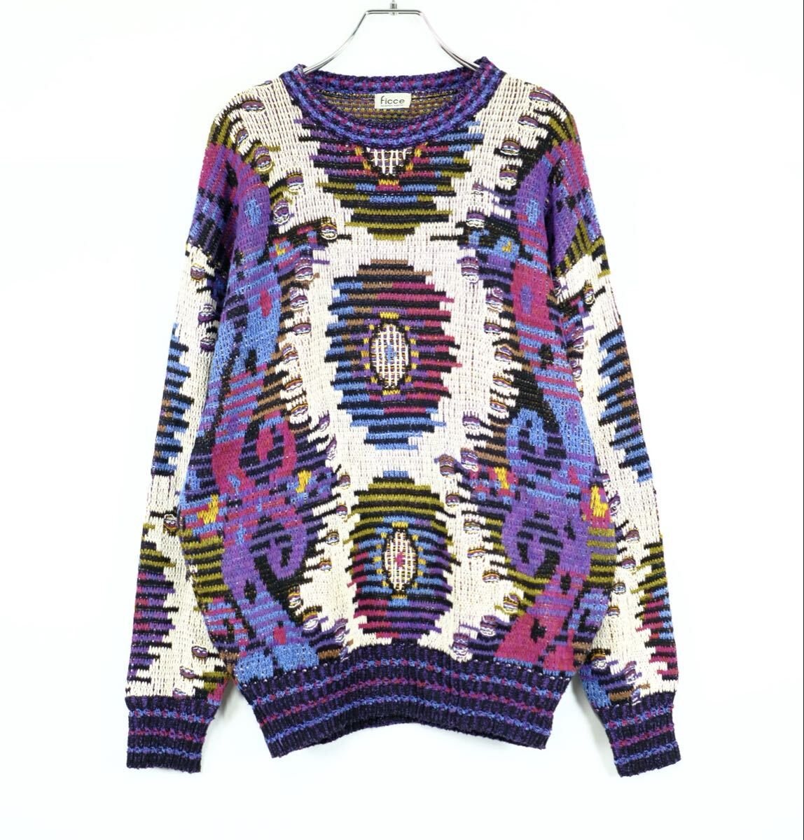 - 1980s FICCE 総柄デザインニットーセーター フィッチェ 初期 古着屋 yoshiyuki konishi ビートたけし 北野武 ドン小西