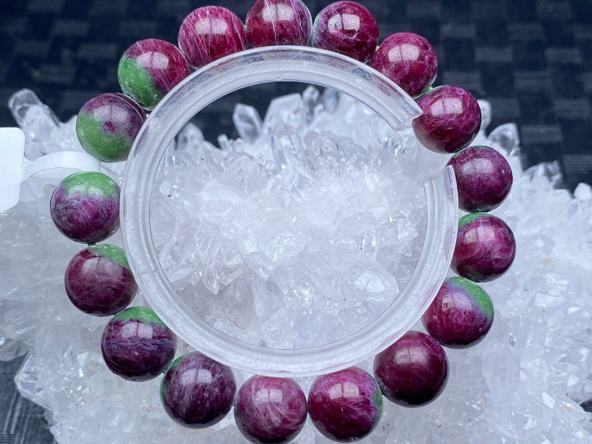 - 即決 0616k520 天然石★【20Aルビーインゾイサイト】★ブレス 12-12.5mm(新品)