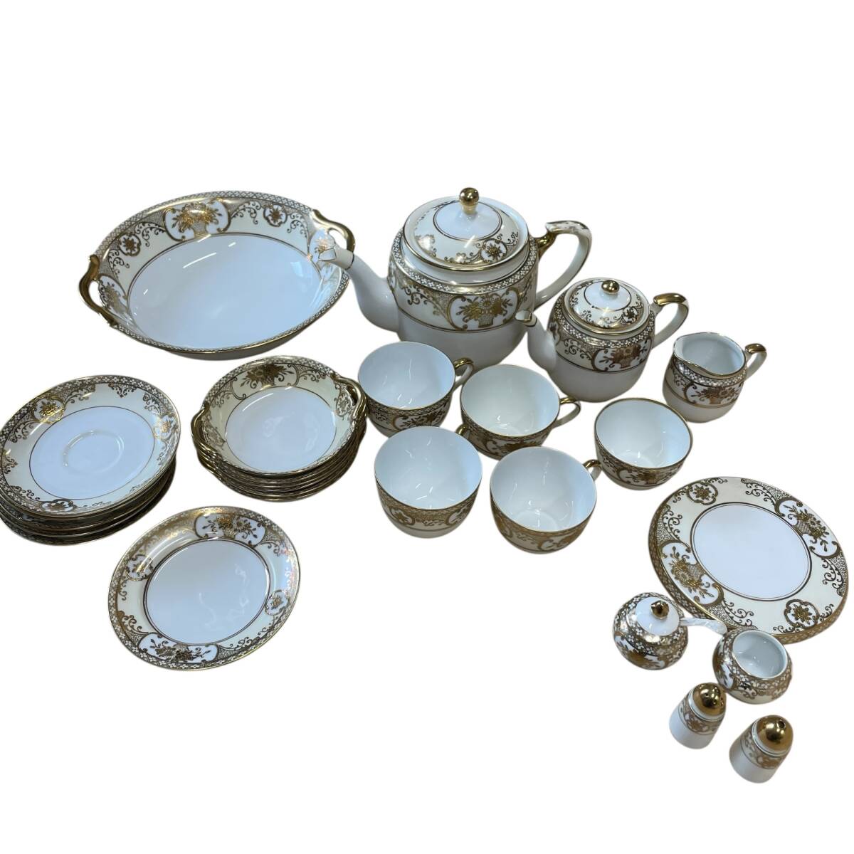 - ◆中古品◆Noritake オールドノリタケ 金盛上げ カップ&ソーサー ポット シュガー プレート 欠け有 ティーセット 食器まとめ kyQ18244N