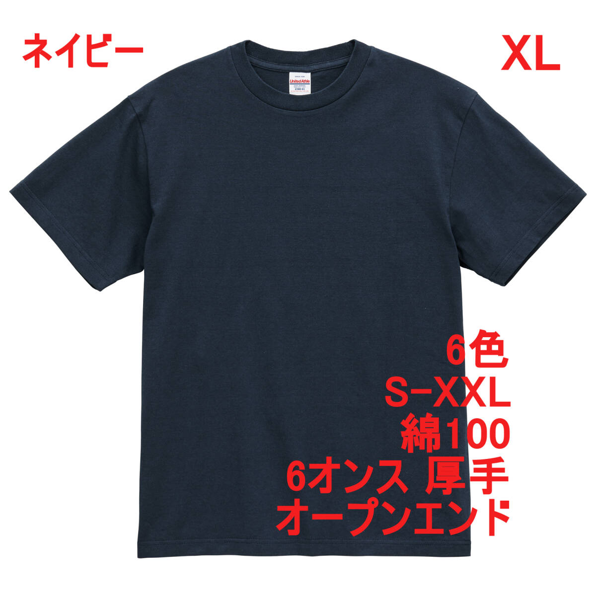 - 【訳有】 450001 XL ネイビー Tシャツ 半袖 厚手 6オンス 綿100% 胸ポケ無し 丸首 クルーネック 無地 定番 無地T ユナイテッドアスレ