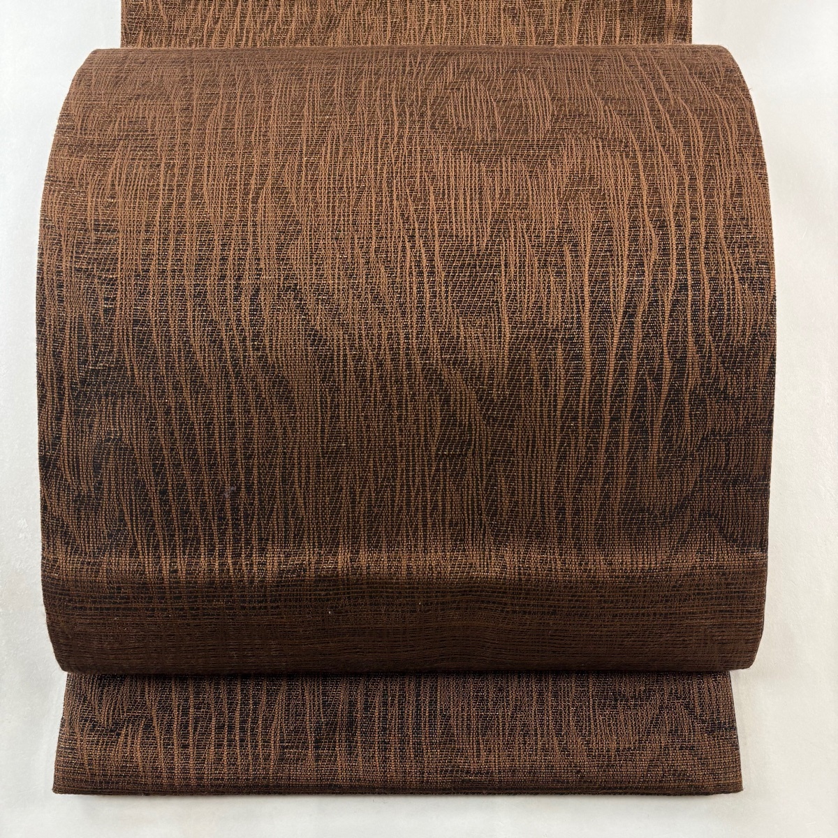 > 袋帯 美品 秀品 樹木 縞 金糸 焦茶色 六通 正絹 【中古】