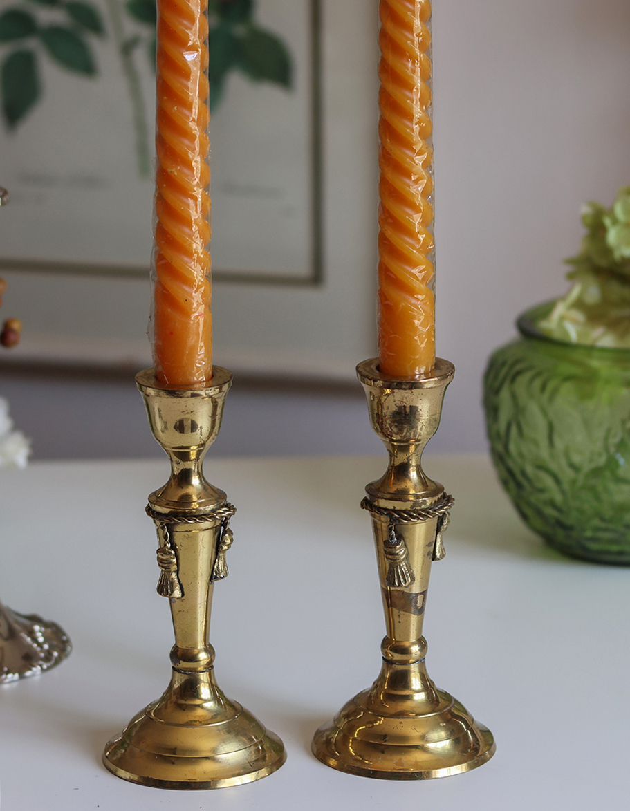 - 真鍮製 タッセル キャンドルスタンド 燭台 2本セット キャンドルホルダー ビンテージ アンティーク調