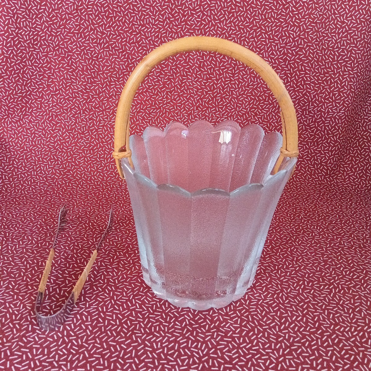 - 中古☆アイスボックス アイスペール 昭和 レトロ ガラス すりガラス 氷入れ