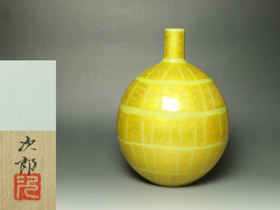 > ■三和堂■小野次郎 釉裏金彩壷 共箱 飾壷 オブジェ 母:小野伯子 高さ29.2㎝ 鮮やかな金彩で非常に優美な作品!!