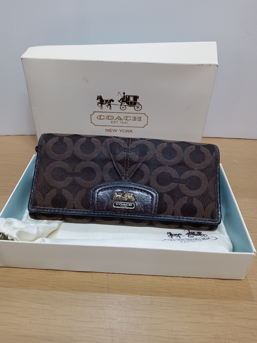 - COACH キャンバス 長財布 ブラウン 中古 小銭入れ レザー BM0025