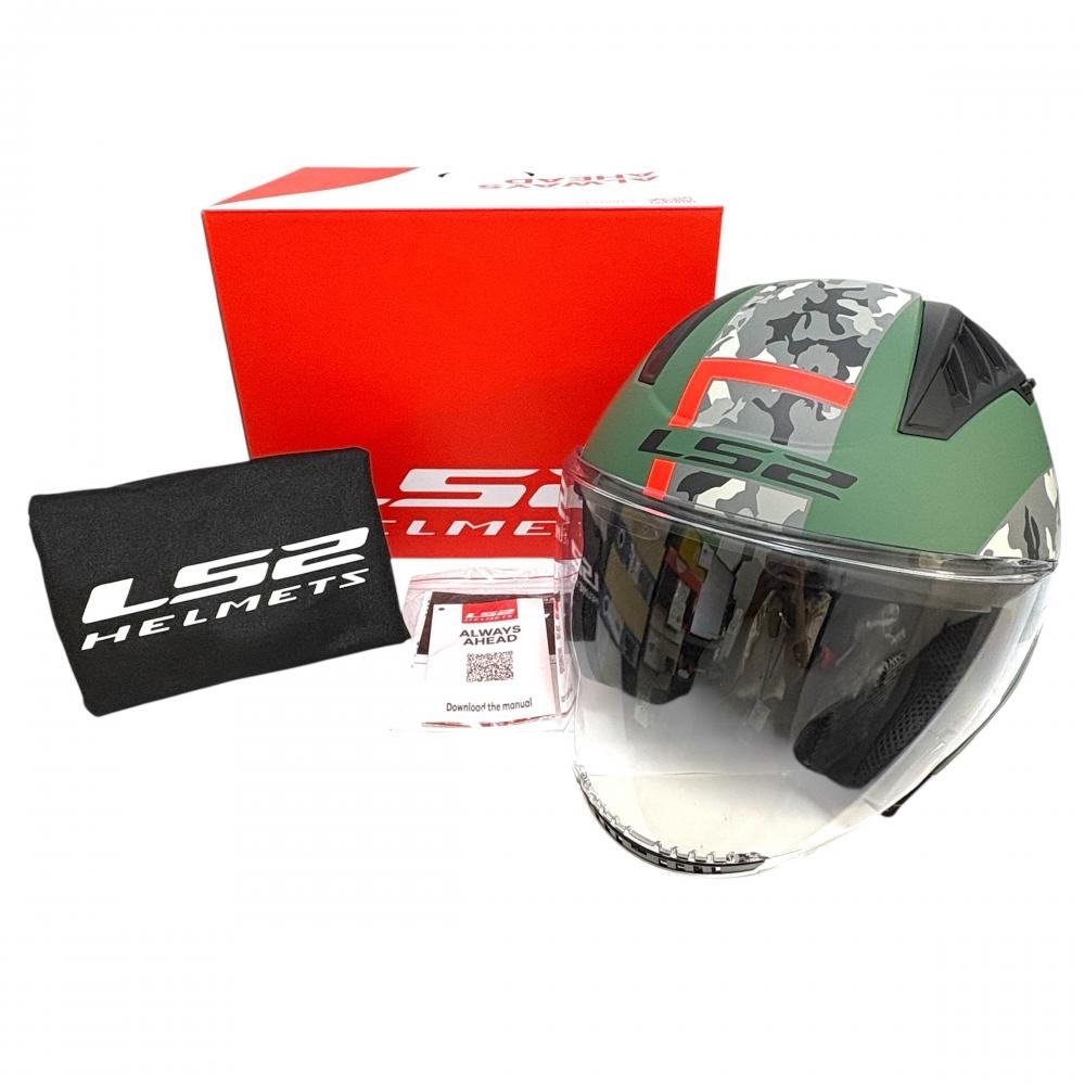 - エルエスツー コプター 【LS2 COPTER】 インナーバイザー付 ジェットヘルメット XXL マットミリタリーグリーンオレンジ 20832