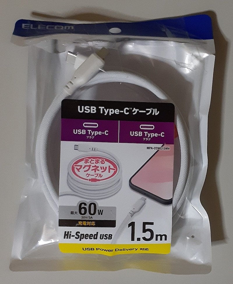 - 6704 MPA-CCMG15WH ELECOM USB Type-Cケーブル 1.5m 磁石の力でくるんとまとまる! USB Power Delivery最大60Wに対応
