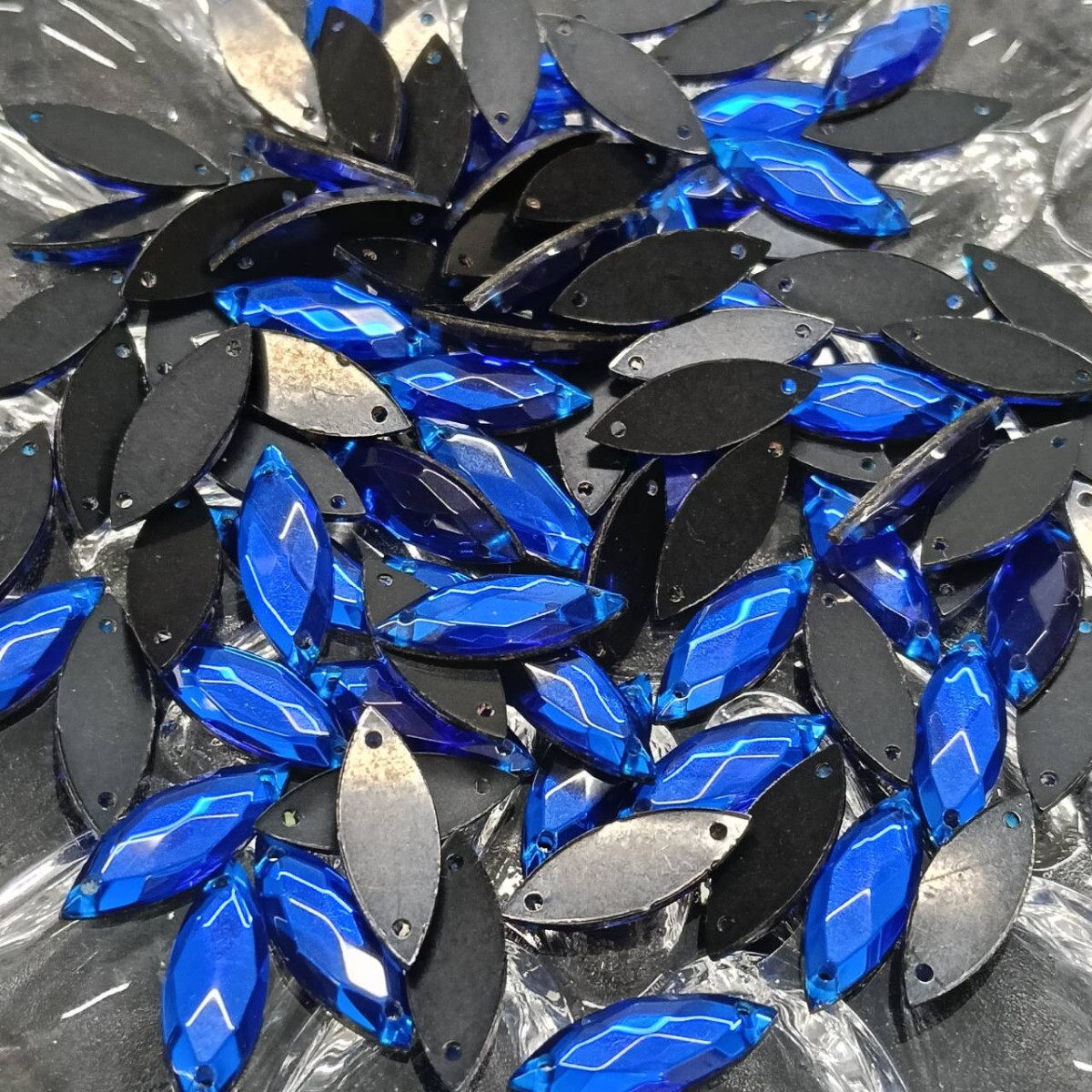 - L277☆未使用 大量 プラパーツ ビーズ オーバル 多面カット 約21g 18×6mm ブルー 青 ヴィンテージ パーツ アクセサリー ネックレス B-480