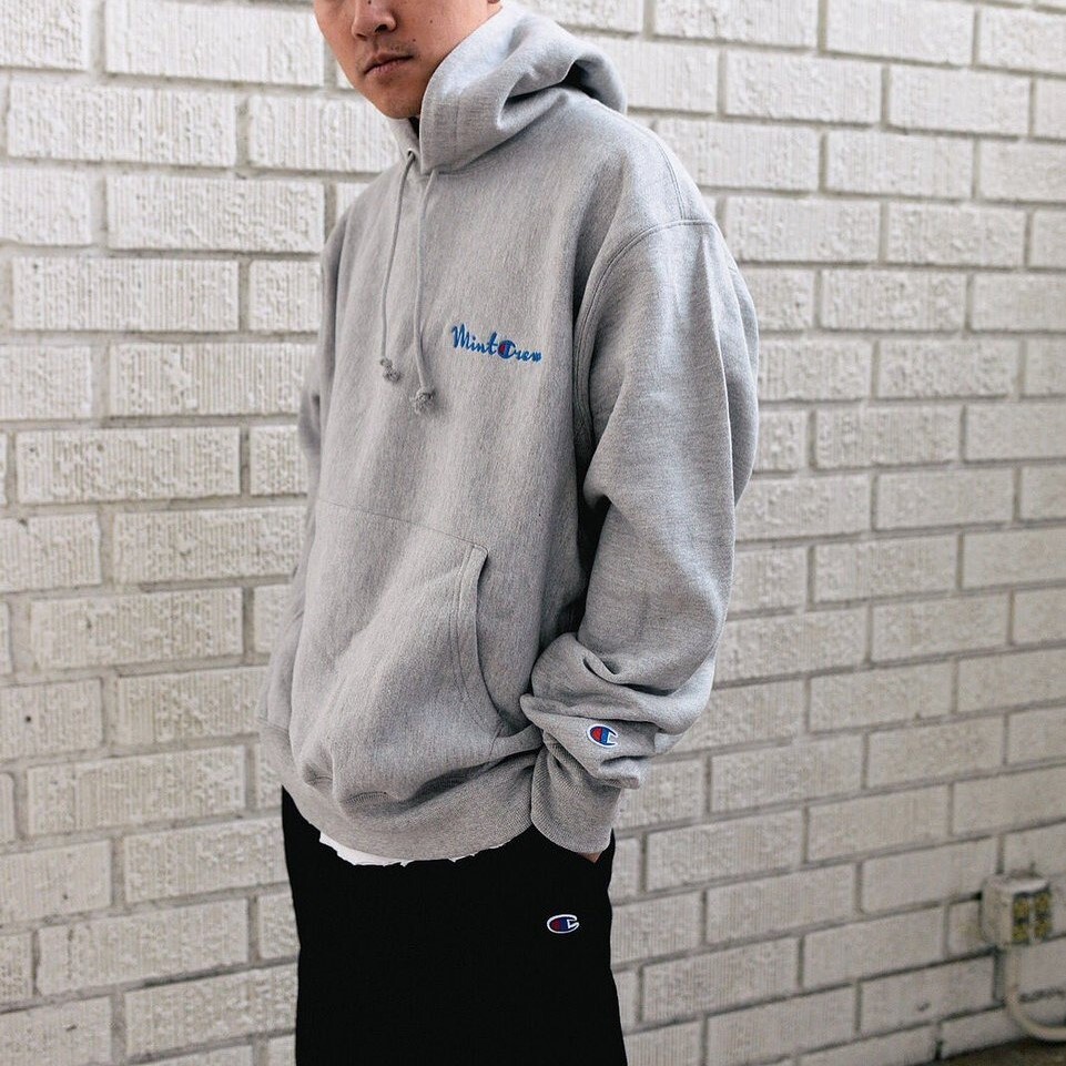 > MINTCREW×Champion/ミントクルー×チャンピオン/青単色タグ/REVERSE WEAVE HOODED SWEATSHIRT/リバースウィーブ/プルオーバーパーカー