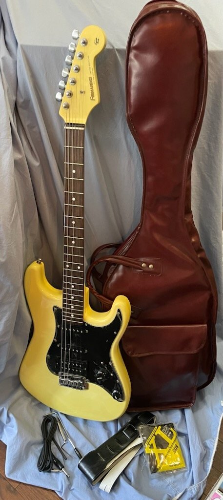 - ◎ FERNANDES LIMITED EDITION フェルナンデス 限定 エレキギター ST-40MR ソフトケース 弦 まとめて 昭和レトロ 現状品