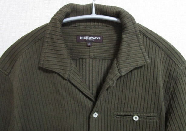 - ハイダウェイニコル イタリアンカラー ストライプシャツ☆オリーブ