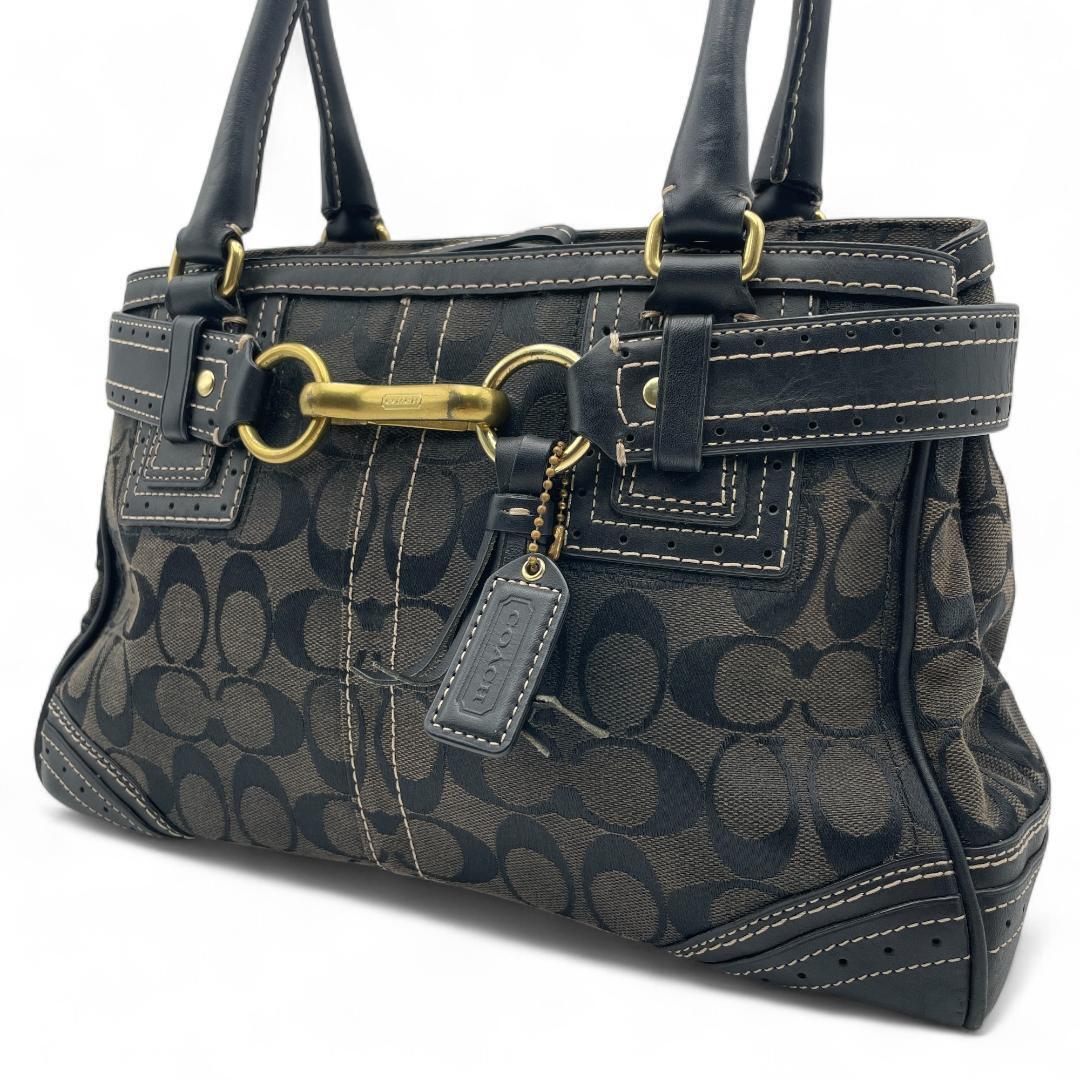- 良品 COACH ハンドバッグ キャンバス ブラック チャーム F10507