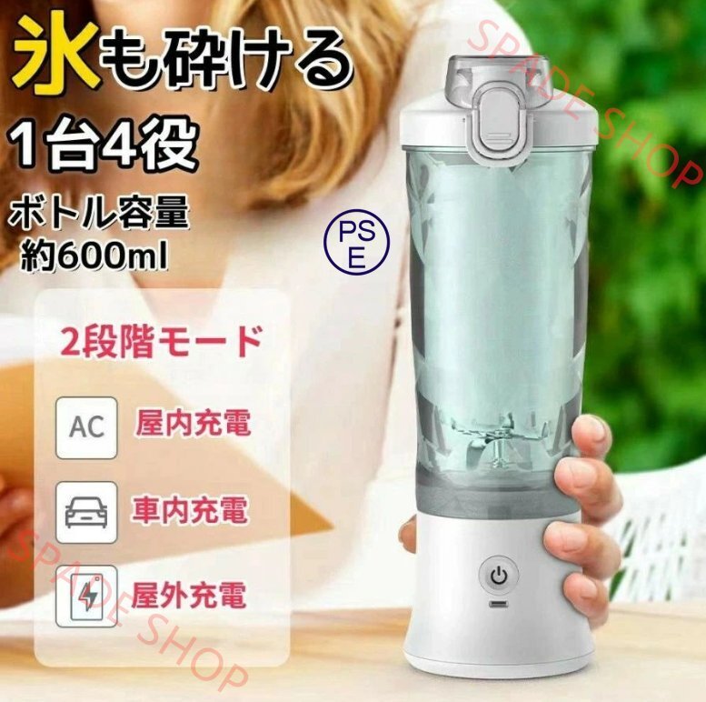 - 「新登場」ミキサー 氷も砕ける 洗い やすい【2段階モード】600ml ジューサー ジューサーミキサー 持ち運び スムージーミキサー 大容量