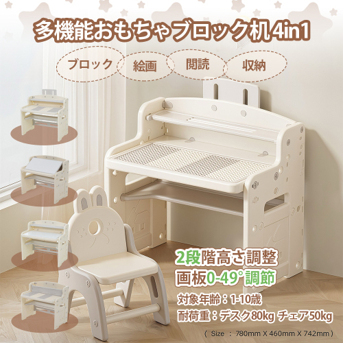 - 多機能チェア+デスクセット 学習机 2Ways 収納 デスク高さ調整可能 キッズチェア ブロックデスク ホワイトボード 組立簡単 赤ちゃん 子供