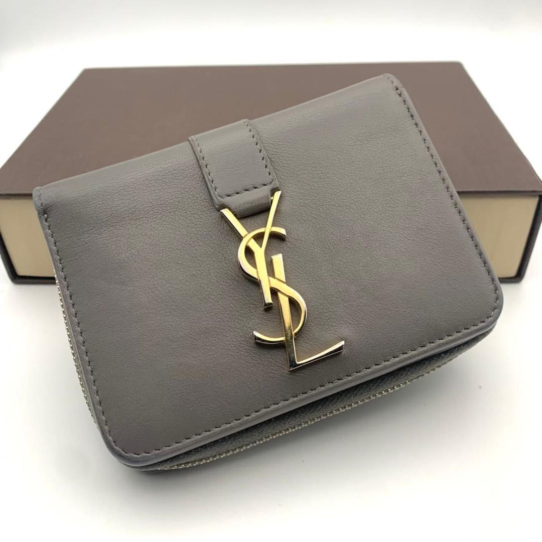 - 鑑定済み サンローラン 財布 カサンドラ YSL 金具 グレー コンパクト