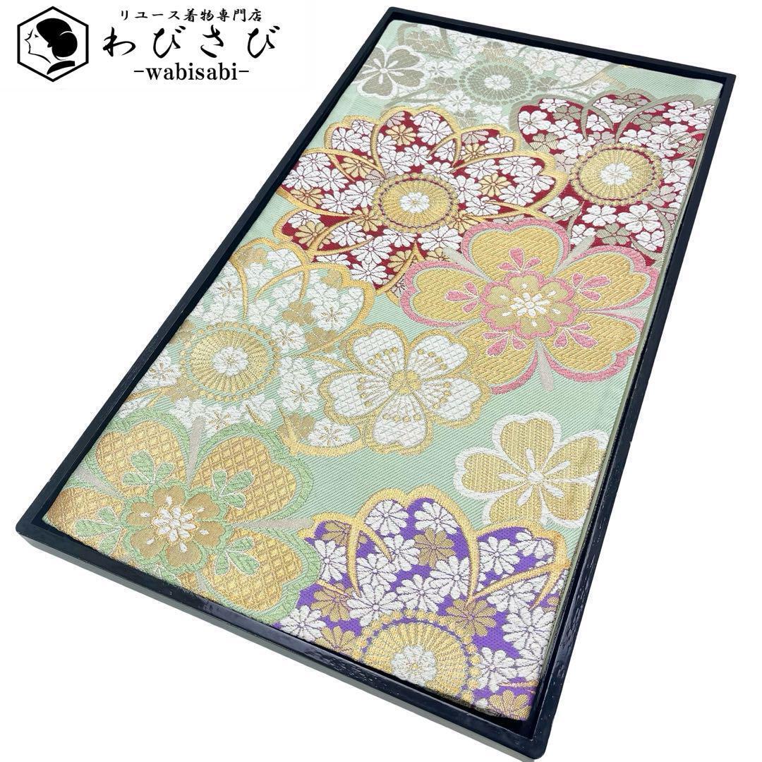 - 袋帯 華やかな花柄模様 金銀糸 浅緑色 振袖 O-4369 着物 きもの kimono 和服 和装 中古 リサイクル着物 【送料無料】