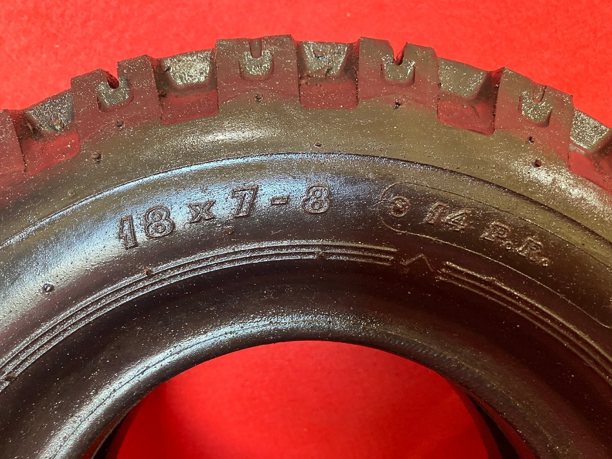 - 【個人宅配送不可】中古 フォークリフトタイヤ 18x7-8 14PR POWER SNOW チューブタイプ スパイクピン付き 2本SET【52742055】