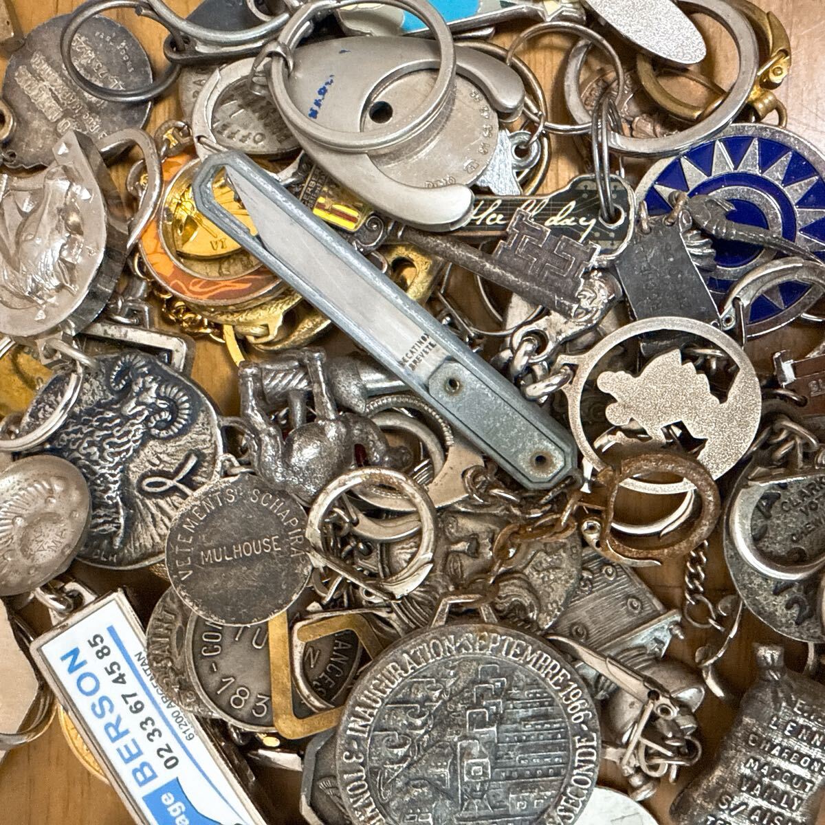 - P650 50個 メタル フレンチキーホルダー フランス ヴィンテージ ビンテージ アンティーク 大量 まとめ まとめ売り 雑貨 金属 卸売 セット