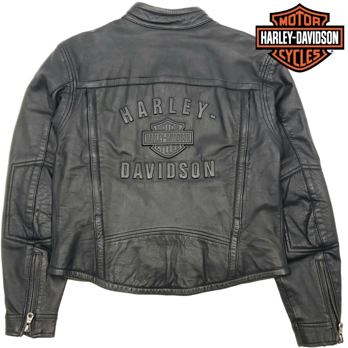 > 特大立体ロゴ◆HARLEY-DAVIDSON◆Sレザーライダースジャケット黒シングル本革ハーレーダビッドソン本皮メンズXS位ライディング革ジャン 950