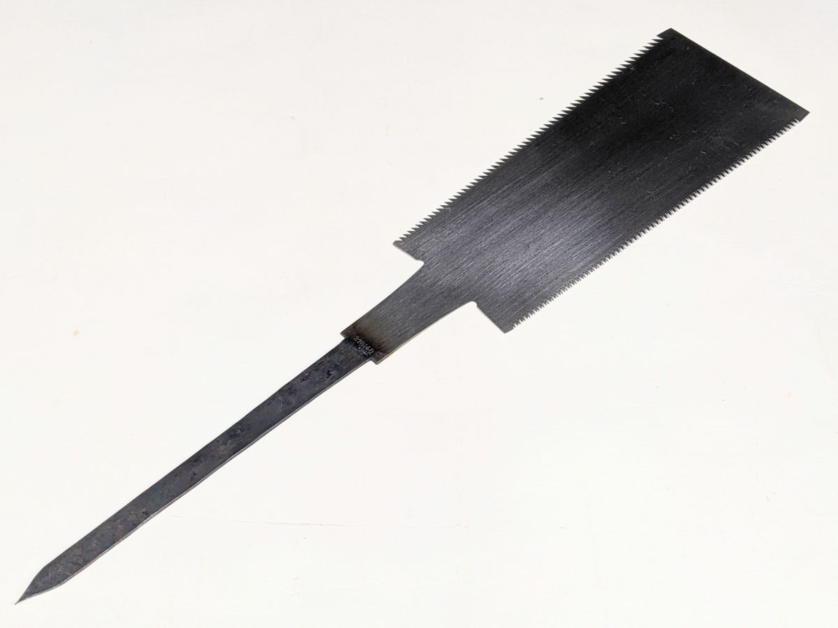 V415 ノコギリ 銘あり 両刃鋸 刃渡り約245mm のこぎり 柄なし 大工道具/80
