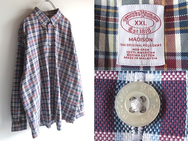 - Brooks Brothers ブルックスブラザーズ MADISON マディソン アメリカンスーピマコットン チェックシャツ BDシャツ XXL ビッグサイズ