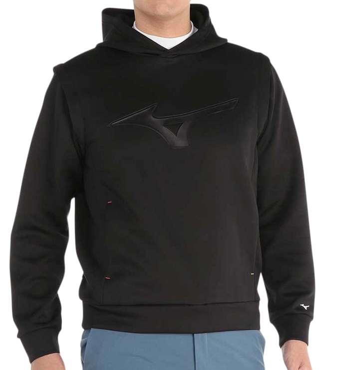 > MIZUNO ミズノ スムース 2WAY パーカ (袖取り外し可) Lサイズ [メンズ] ブラック E2MCB003 フード