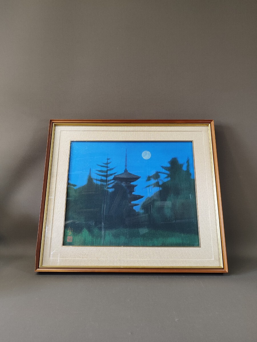 - k94 【平山郁夫】作工藝画『蔡師寺の夜』446/1000 共同印刷制作額装 真作