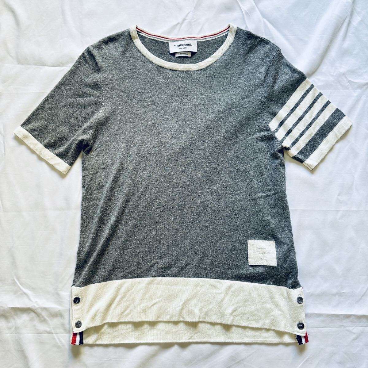 - トムブラウン メンズ コットンニット Tシャツ トップス サイズ2 Thom Browne Rib Cuff Trim T-Shirt
