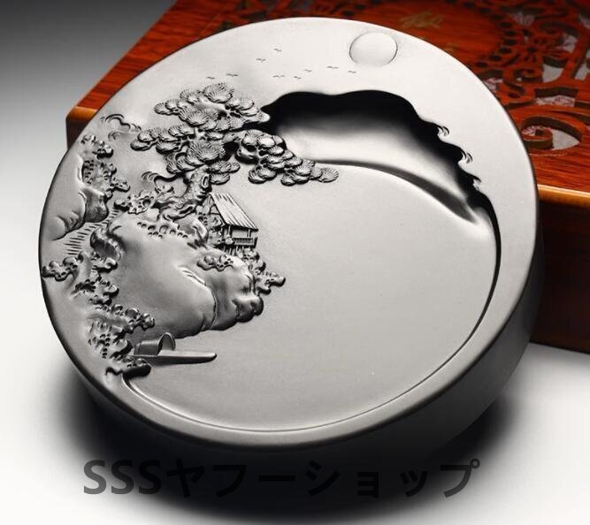 - 歙硯《松江暁月》佳品原石黒竜尾 老坑 端硯 天然原石 用 收藏 書道 絵画 硯 プレゼントに最適