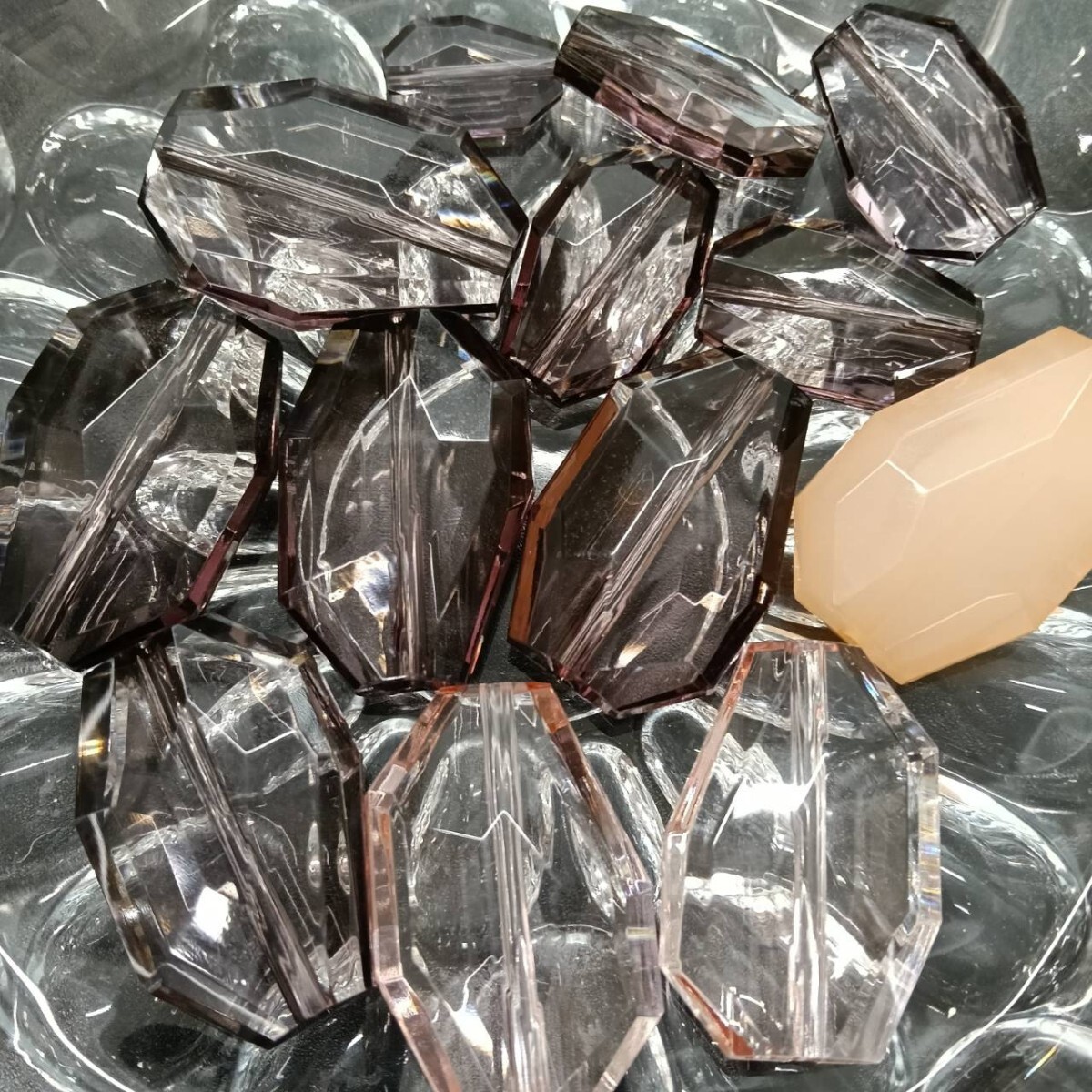 - L292☆未使用 大量 プラビーズ オーバル 多面カット 約89g 18~38mm ピンク ブラック ヴィンテージ パーツ ネックレス イヤリング S-536