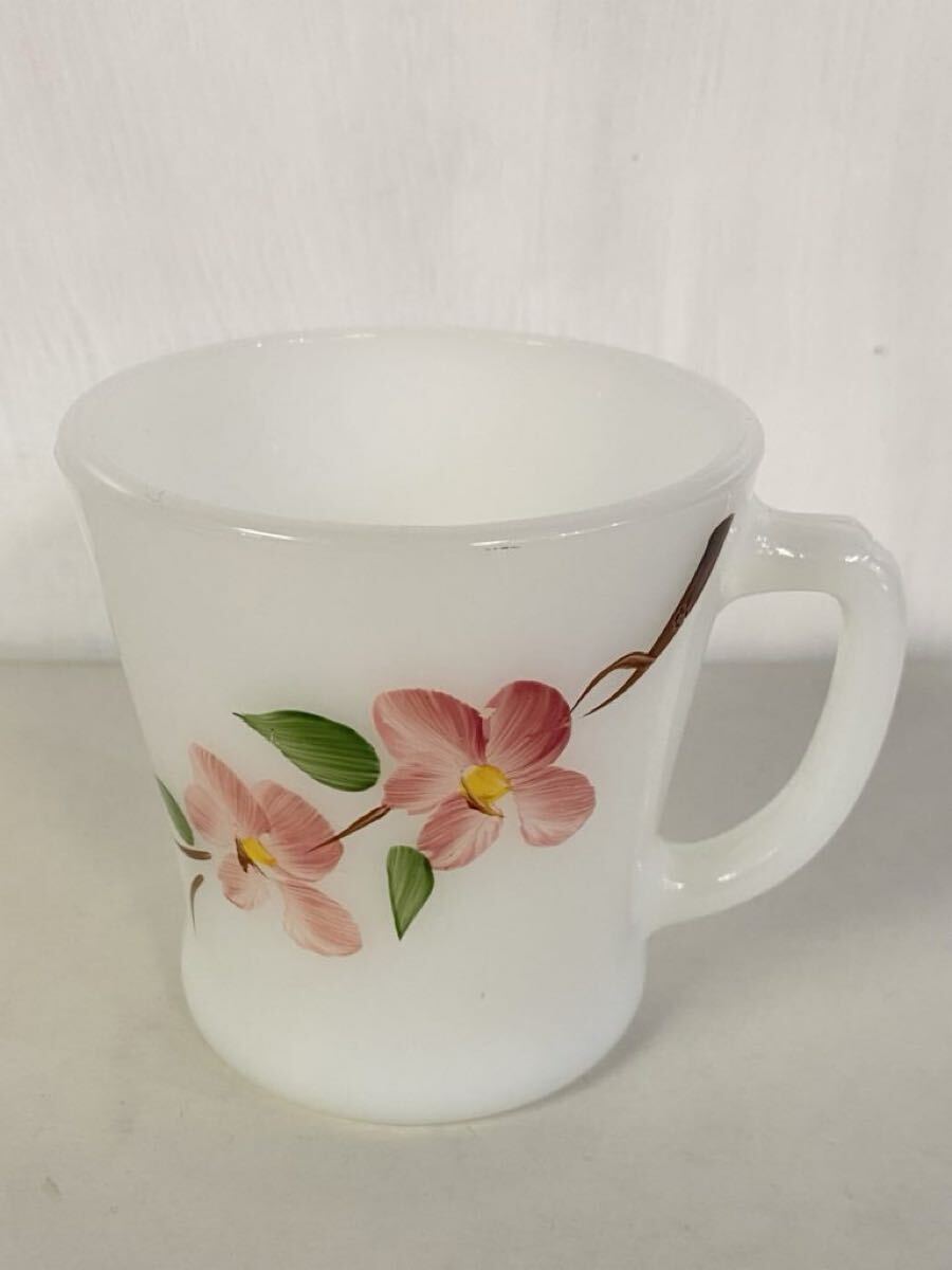 > 1960s ファイヤーキング マグカップ Dハンドル ピーチブロッサム 1★ ビンテージ 60s アンティーク ゲイファド USA ミルクガラス 耐熱 花柄