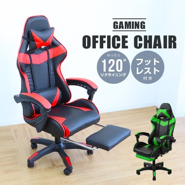 > ゲーミングチェア グリーン オフィスチェア 120度リクライニング オットマン フットレスト付 ハイバック パソコン デスクチェア 在宅 配信