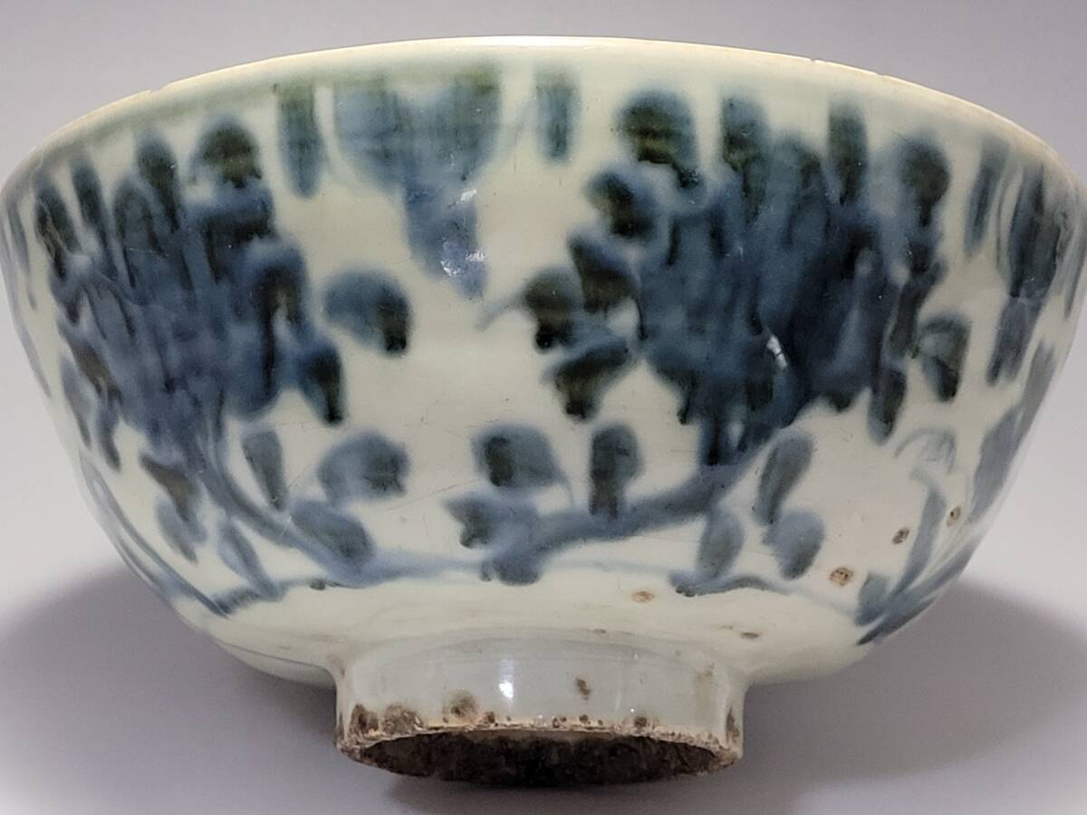 > ● 幅 約 21.4cm 花と鳥がきれいに描かれた 時代唐物 染付 花鳥紋 菓子器・元明時代 茶碗 茶道具 煎茶道具 茶器 陶瓷器 唐物 人間国宝 ●