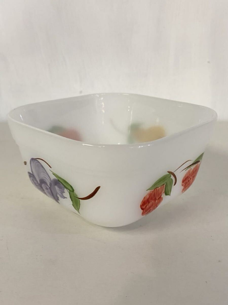 > 1950s ファイヤーキング レフリッジレーター フルーツ 2 ★ ビンテージ 50s アンティーク ゲイファド USA ミルクガラス 耐熱 花柄 皿 角皿